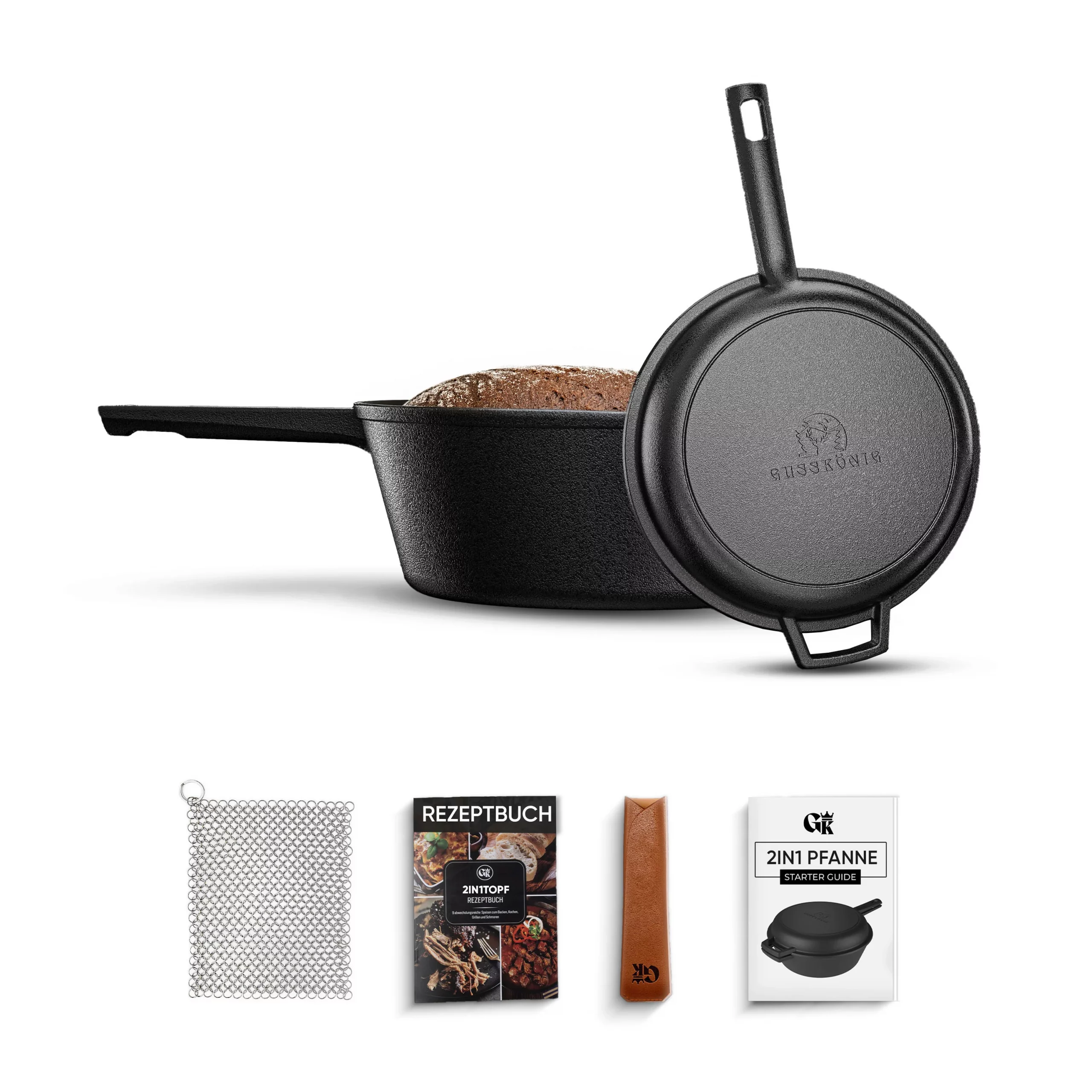 2in1 Gusseisen Brotbackform – inkl. Kochbuch & Zubehör
