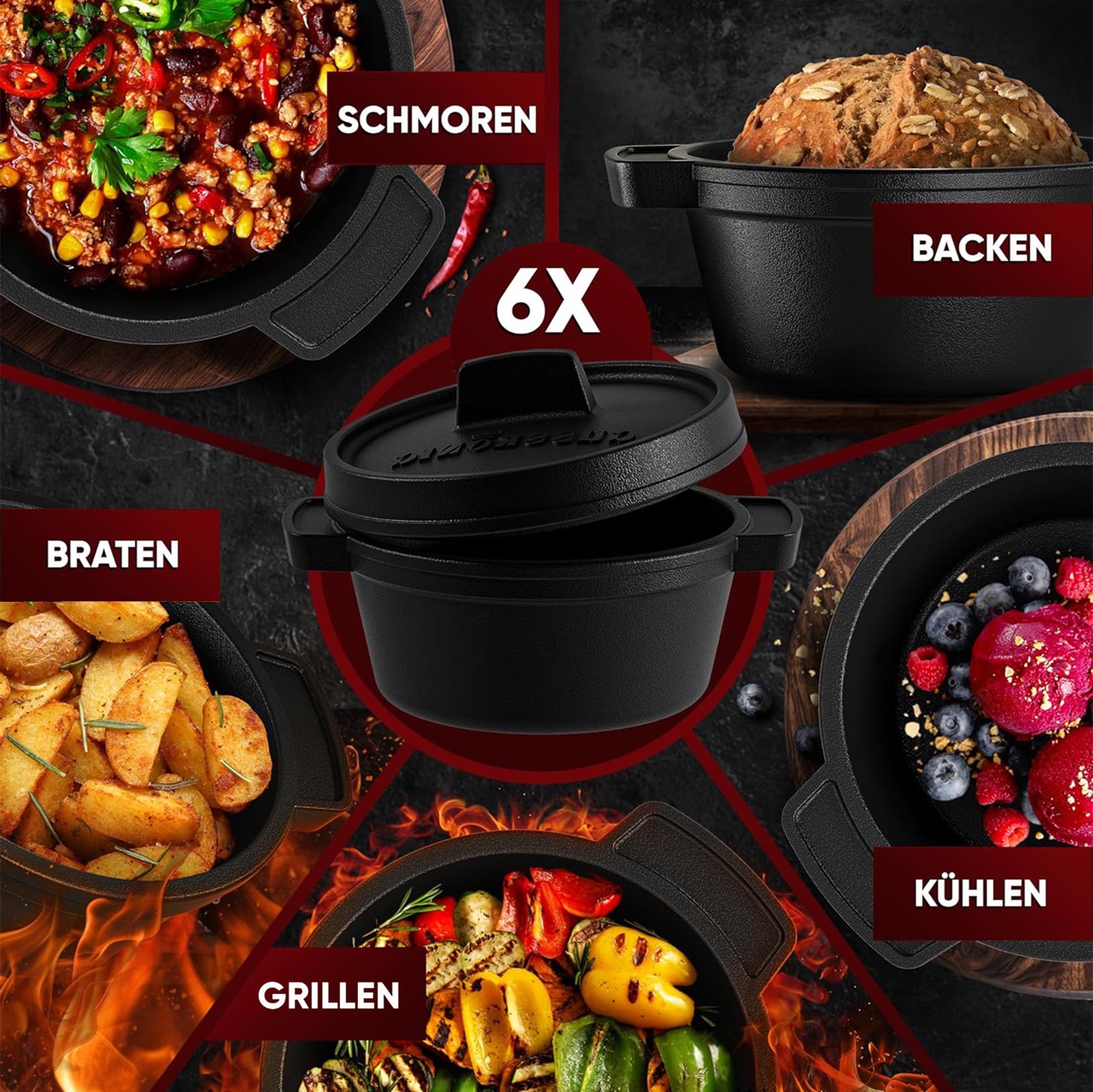 VIELSEITIG EINSETZBAR – Ob Schmoren, Braten oder Grillen – unser Gusseisen Topf klein ist ein echtes Allroundtalent und für jede Situation geeignet. Entdecke die vielfältigen Einsatzmöglichkeiten deiner mini Töpfe und bringe Abwechslung in deine Küche!