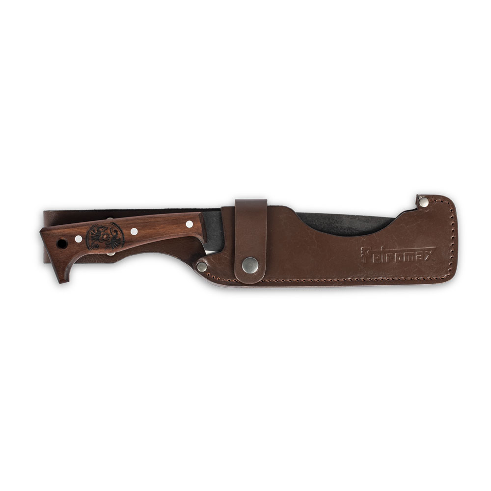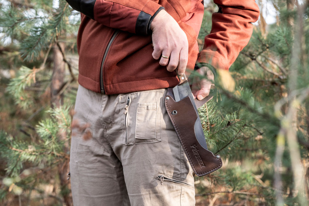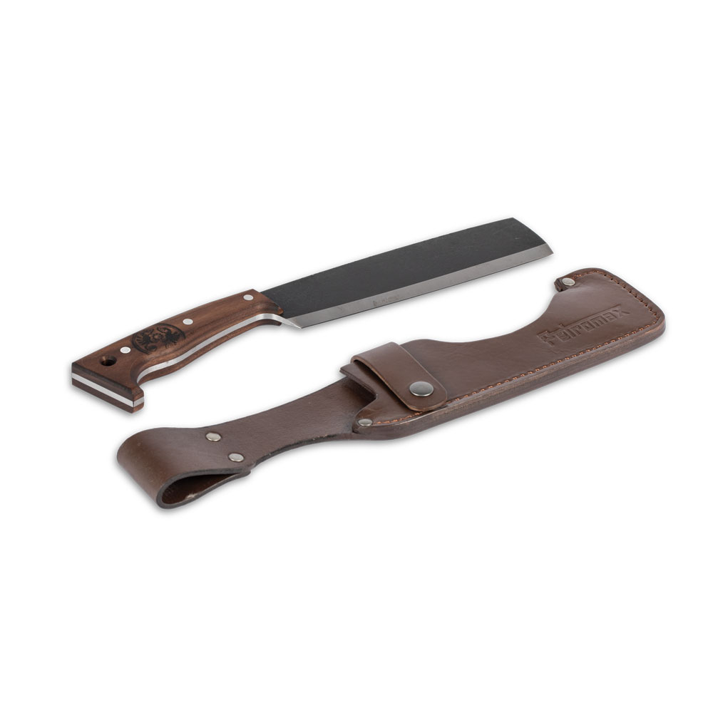 Die Klinge des Nata Messers besteht aus erstklassigem deutschen Carbonstahl (auch als 80CrV2 bekannt). Es widersteht Stößen und großen Belastungen, was es neben der Nutzung als Survival-Messer, auch zum idealen Gartenwerkzeug macht. Es eignet sich als Haumesser perfekt für Holzarbeiten, wie das Entrinden von Ästen, das Entasten oder das Fällen von Büschen und das Auslichten von Sträuchern. Mit seinem Scandi-Schliff ermöglicht es millimetergenaue Schnitte und lässt sich leicht nachschärfen. Der Walnussgriff bietet dir dabei einen festen Halt und verfügt über einen integrierten Abrutschschutz sowie eine Öse zum Aufhängen.