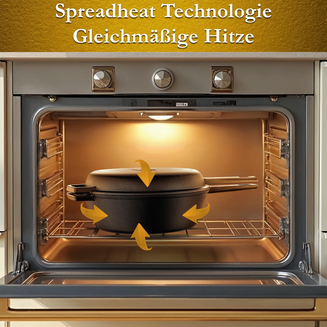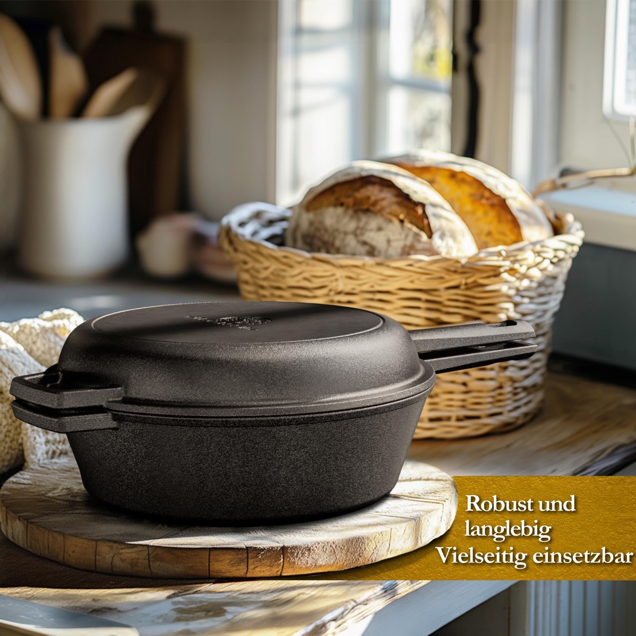 2in1 Gusseisen Brotbackform – inkl. Kochbuch & Zubehör – 2in1 Pfanne