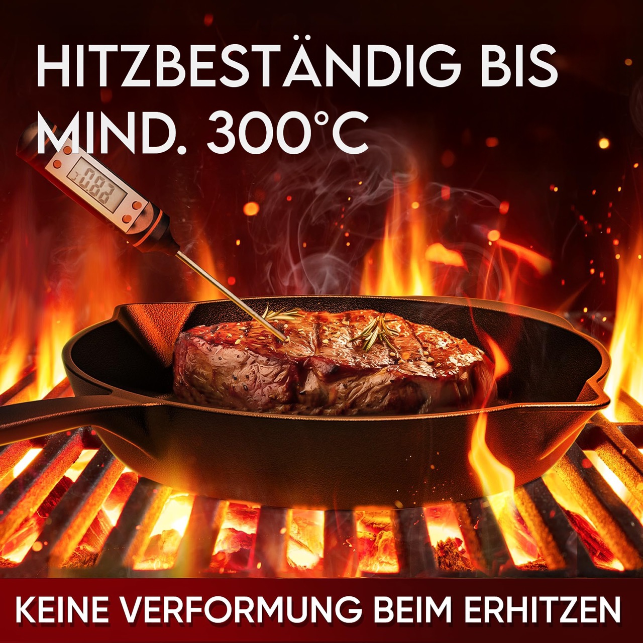 PREMIUM ZUBEHÖR FÜR PROFIS: Unser Set beinhaltet 1x robuste Gusspfanne Grill, 1x Edelstahl Ringreiniger, 1x Echtleder Griffschutz und ein umfangreiches Rezeptbuch. Alles, was DU für das perfekte Grillerlebnis benötigst!