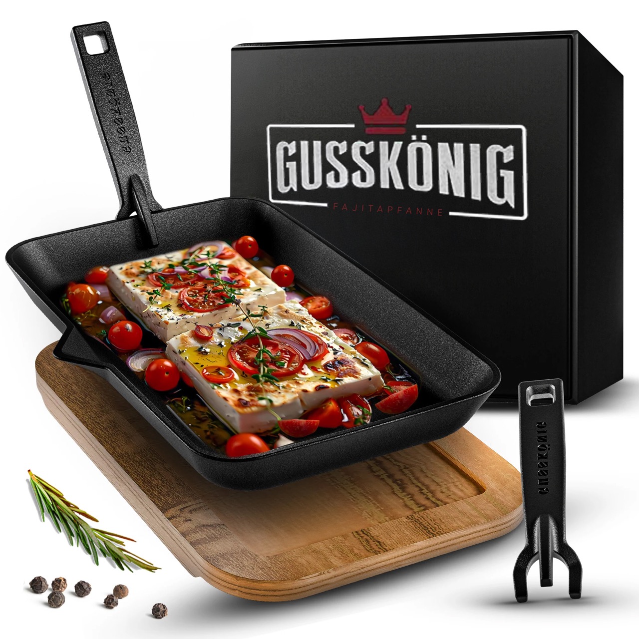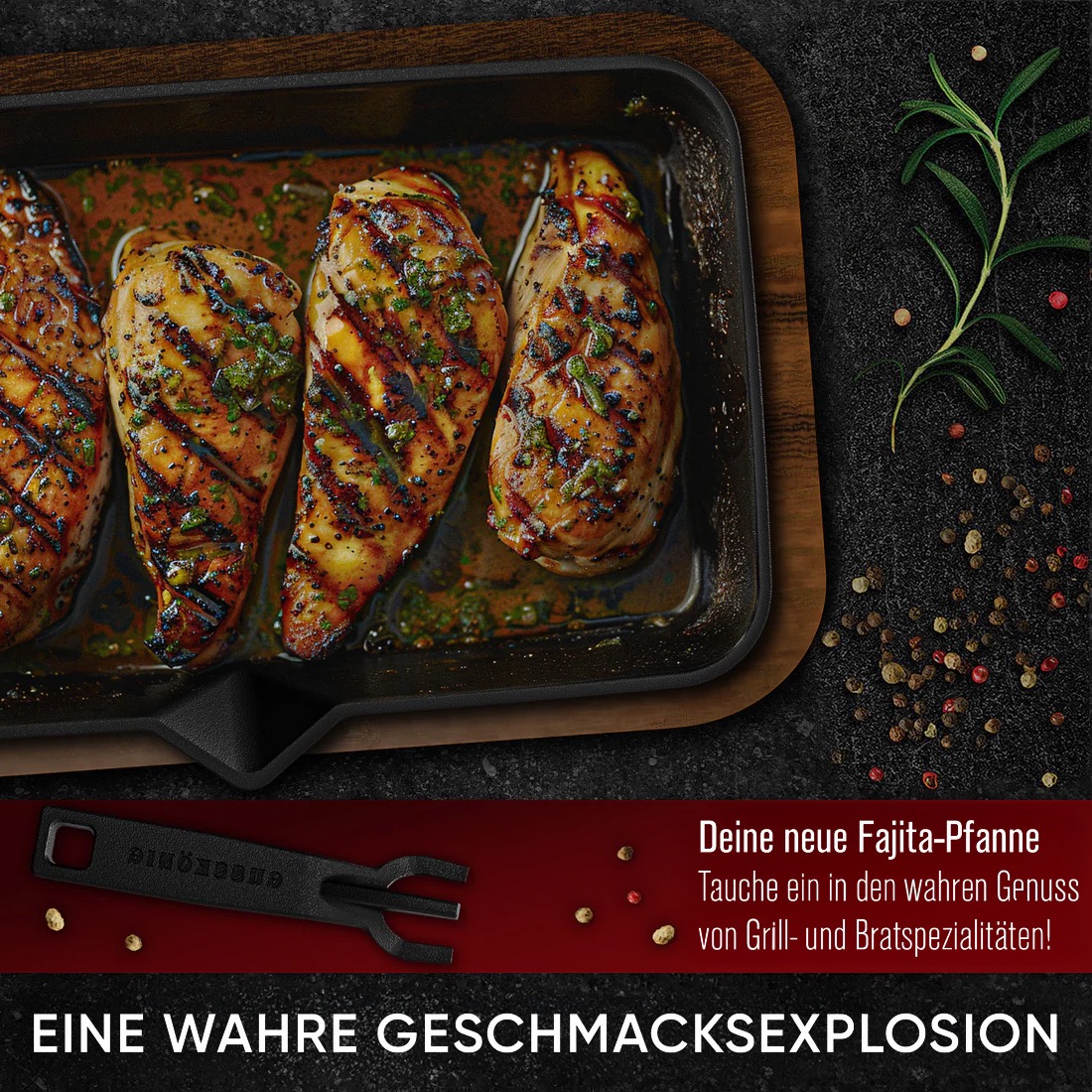 SOFORT EINSATZBEREIT – Unsere Fajita-Gusseisenpfanne kommt bereits vorgereinigt zu dir, sodass du sofort loslegen kannst. Im Gegensatz zu anderen Produkten auf dem Markt ermöglicht unsere Pfanne die sofortige Nutzung ohne vorherige Vorbereitung!