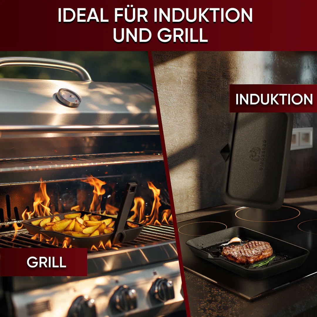 ZAHLREICHE ANWENDUNGSMÖGLICHKEITEN – Unsere Grillpfannen sind geeignet für Feuer, Gas, Backofen, Elektro- und Induktionsherde – perfekt für den Einsatz drinnen und draußen. Die Mini-Pfanne sorgt für eine gleichmäßige Wärmeverteilung!