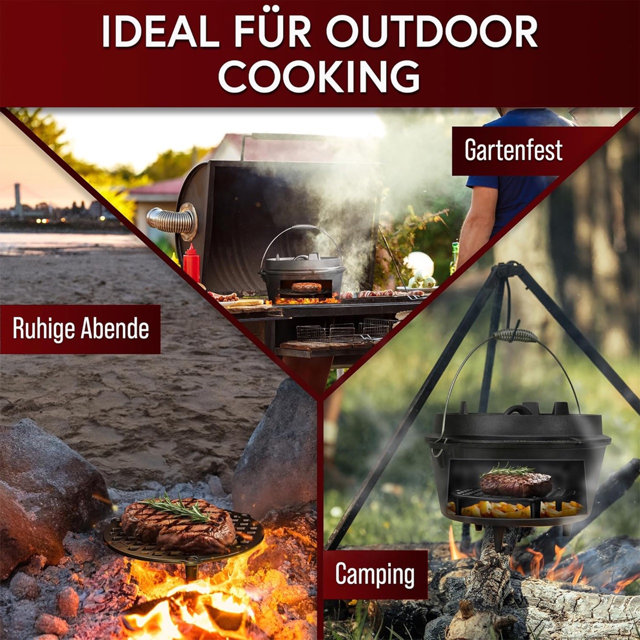 VIELSEITIG EINSETZBAR: Der Stapelrost kann nicht nur im Dutch Oven verwendet werden, sondern dient auch als praktischer Untersetzer, Feuerrost, Grillrost oder Stapelhilfe für verschiedene Zubereitungsarten!
